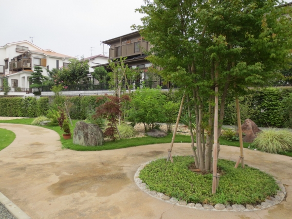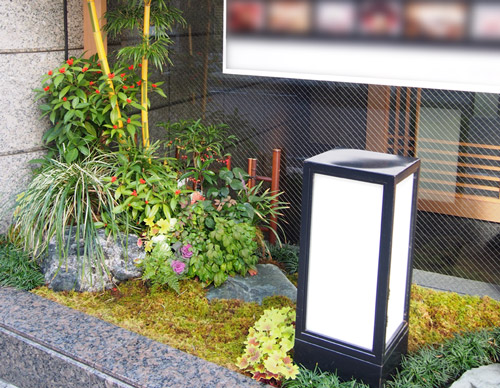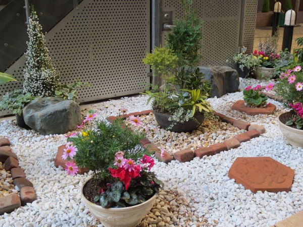 マンションの中庭なので、明るい雰囲気が感じられるようにアレンジしました。
